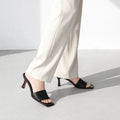 * Due to the characteristics of the 9cm heel/mule design, it is easy to take off depending on the shape of the foot. If you need a good fit and ease of walking, we recommend wearing it barefoot or using a transparent shoe belt.